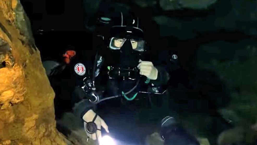 綜合大陸媒體報道,韓頲水下洞穴探險失聯的第4天,搜尋人員使用了水下機械人進行搜索,在水下百餘米處發現了韓頲的身影。