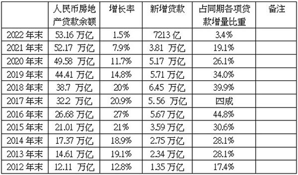表1:2012-2022人民幣房地產貸款及其佔同期各項貸款增量比重