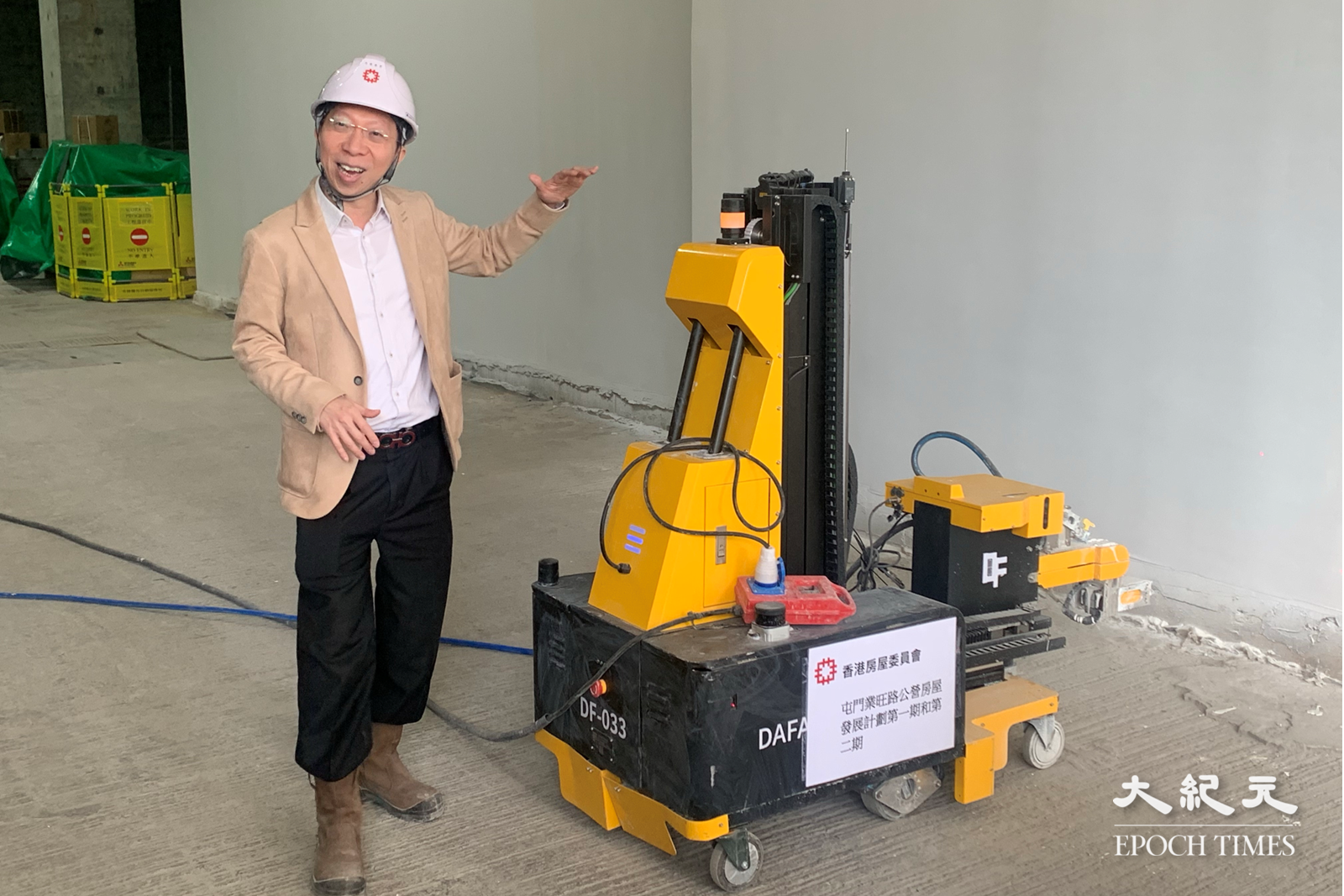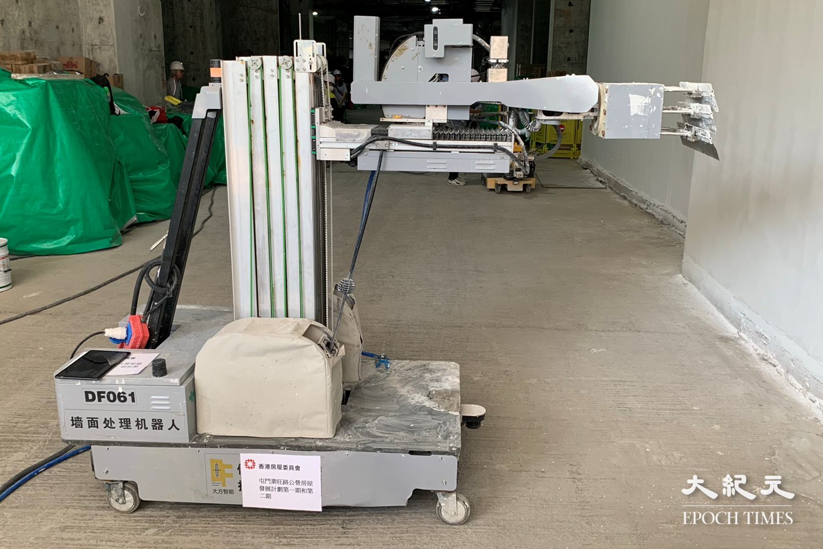 港府早前稱,未來10年已覓得足夠土地供興建約41萬伙公營房屋單位,但近年建造業面對技術性工人老齡化和短缺問題。房委會引入集批盪、打磨、噴塗功能於一身的建築機械人,以彌補部分人手供應缺口,並提高工地安全和工作效率。至今有近40個項目承建商已經或使用有關技術。