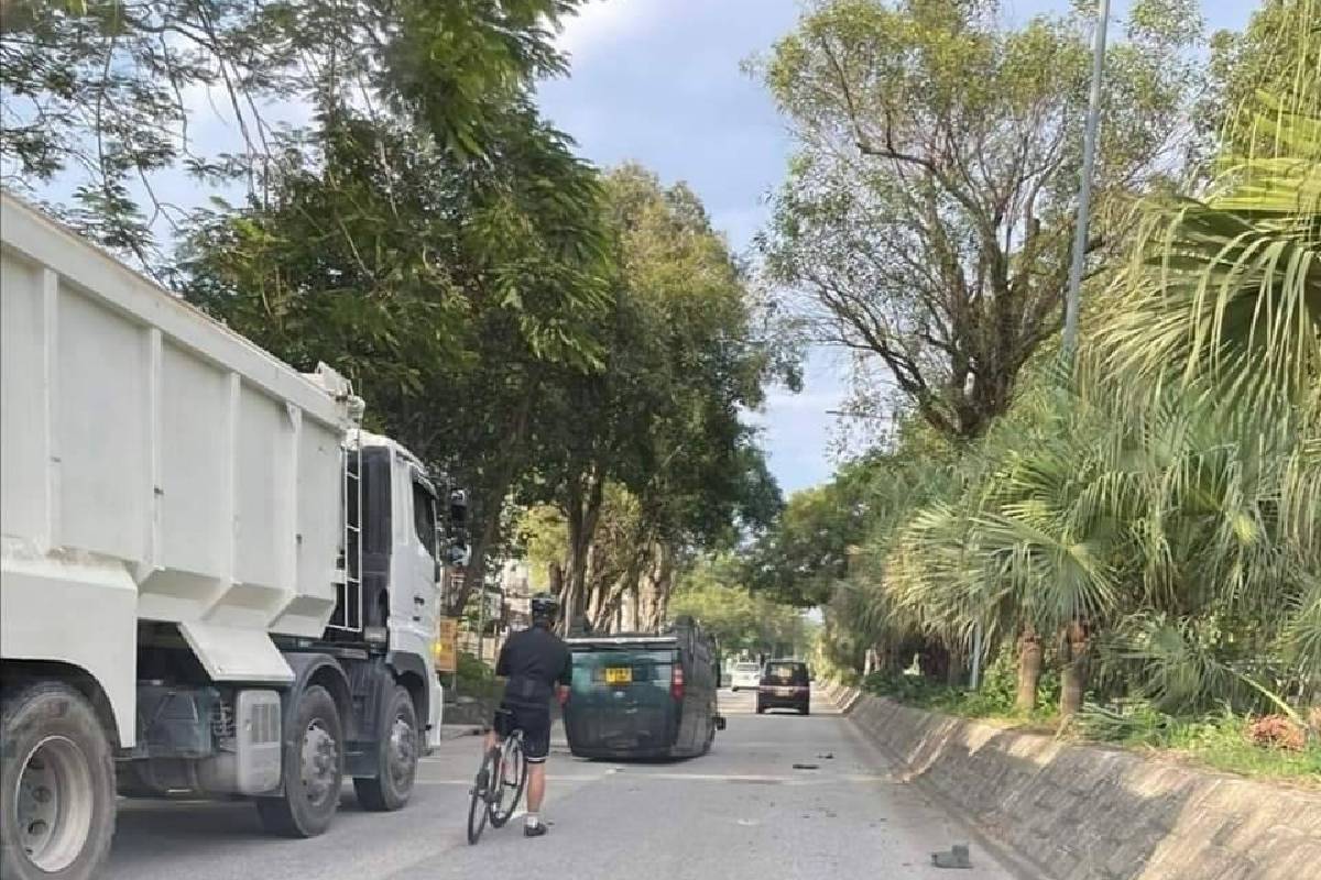 沙頭角公路龍躍頭段今早(13日)一輛客貨車意外翻側,四輪朝天,司機受傷需送院治理。