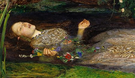 約翰‧埃弗雷特‧米萊斯爵士(Sir John Everett Millais,1829-1896)是拉斐爾前派創始人之一。他在藝術生涯早期創作的油畫《奧菲莉婭》(Ophelia),可以說是史上鼎鼎大名的莎翁戲劇題材畫作。畫中描繪的場景取自《哈姆雷特》(Hamlet)第四幕第七場。