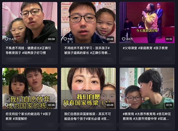 近段時間,大陸社交平台不斷出現一類影片,即父母們帶著孩子錄影片宣誓說:「我們自願放棄做國家棟樑之材,願做一名普通的市井小民,同時也接受孩子的平庸。」