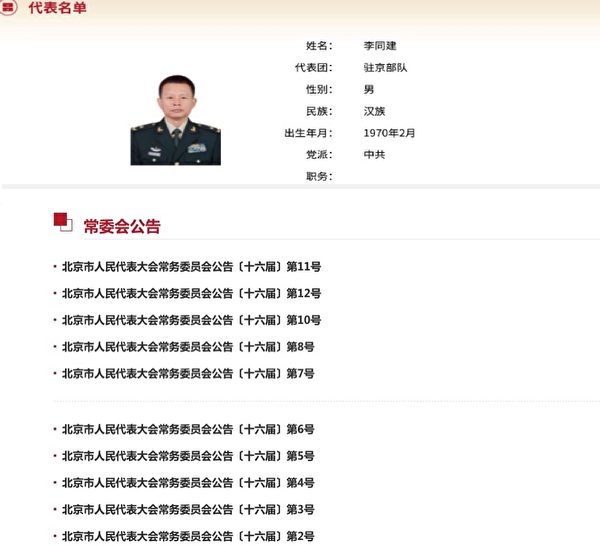 不過大紀元記者發現,當局未公布李同建被免職務的消息,但公布了另一名駐京部隊代表馬新建被免去代表資格,理由稱是工作變動。