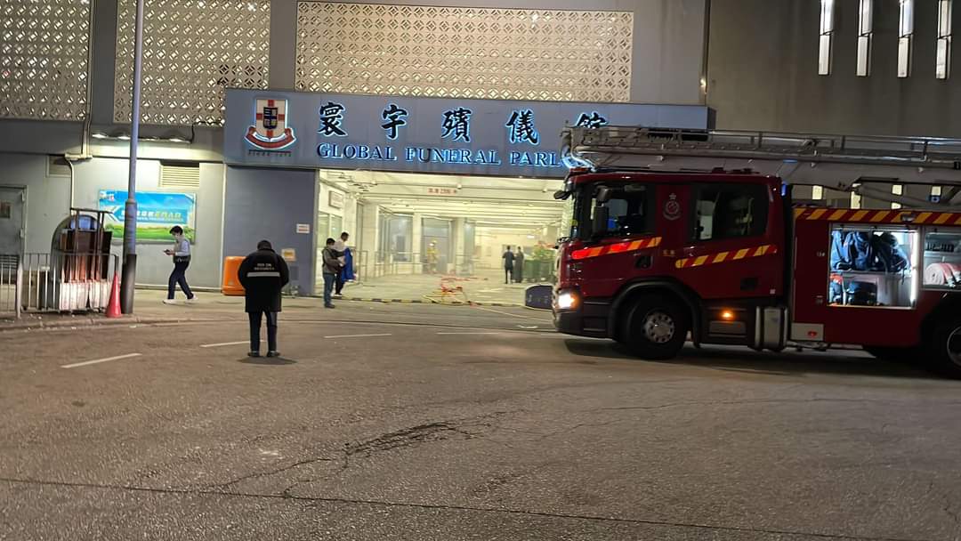 現場為紅磡暢行道6號寰宇殯儀館,事發於昨日晚上9時許,殯儀館內一個正進行儀式的靈堂,突然失火,祭壇上一個木框亦被波及,滾滾濃煙從殯儀館內冒出。