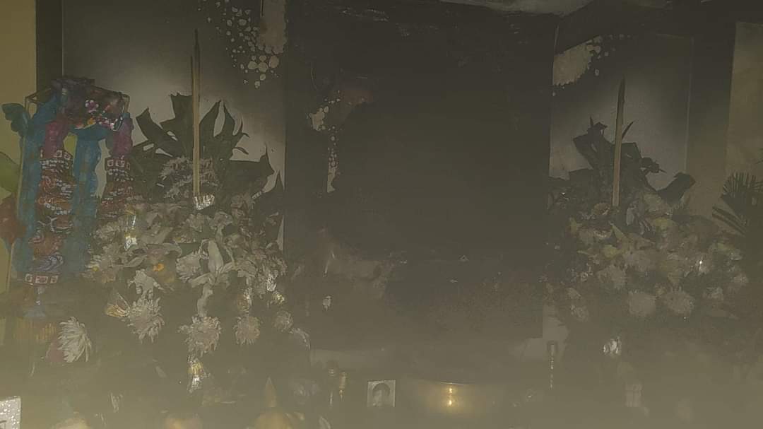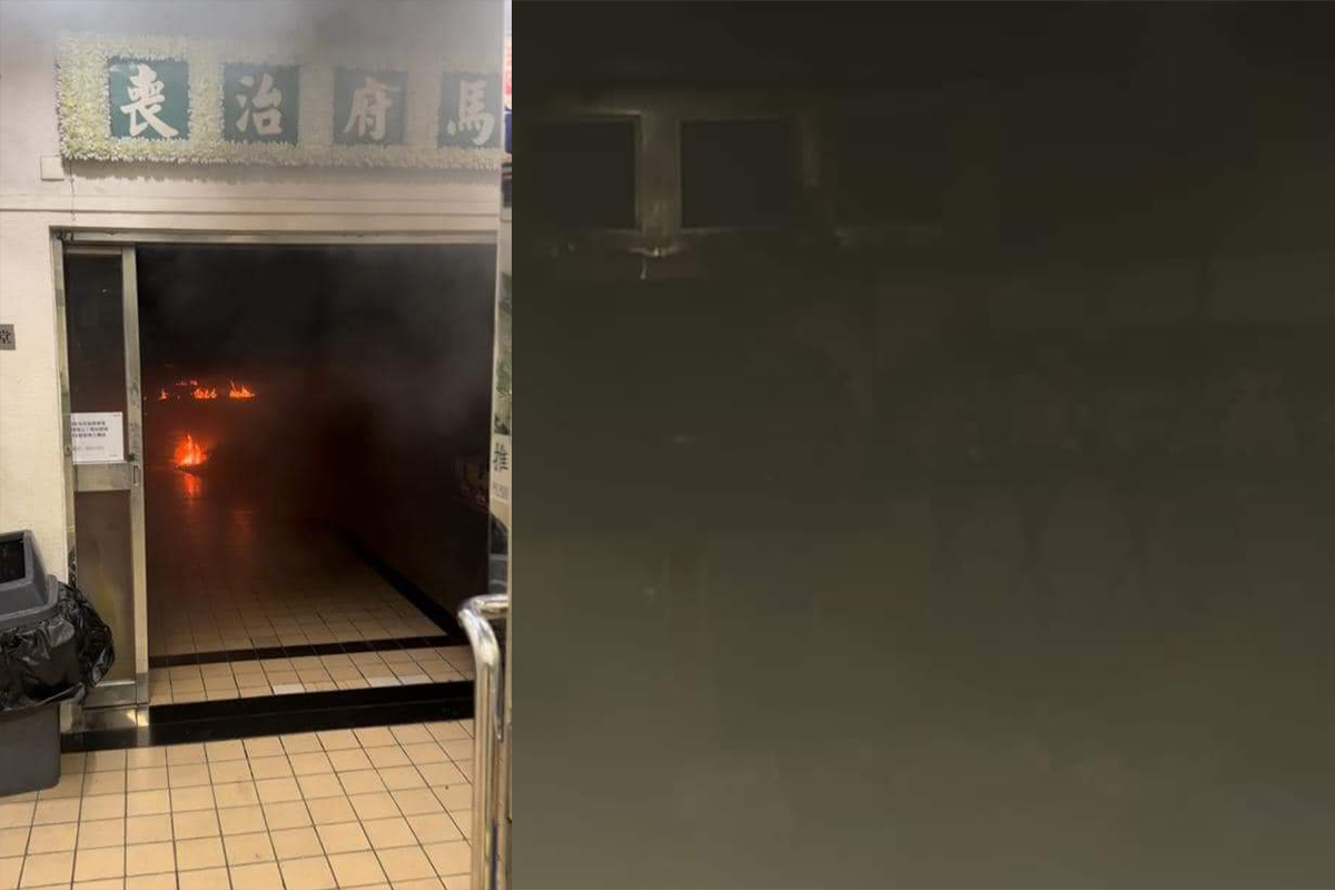 從網上圖片可見,肇事靈堂內火光熊熊,燈光全熄,大量濃煙從殯儀館內冒出,祭壇牆身被嚴重燻黑。