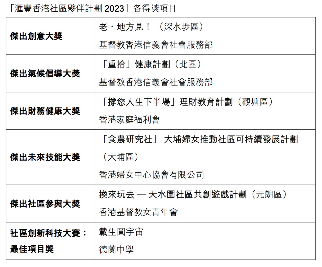 今年「滙豐香港社區夥伴計劃」共30個項目獲選,來自全港18區,估計超過13.7萬人受惠。滙豐銀行慈善基金今日在滙豐總行大廈舉行的典禮中嘉許優秀的項目。