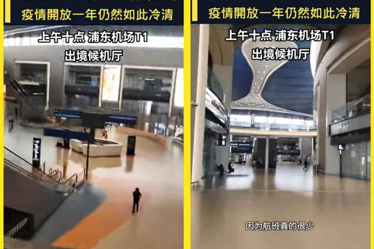 不過,影片博主「南京圖支老英雄」近日也發影片,曝光上海浦東機場的超冷清畫面。