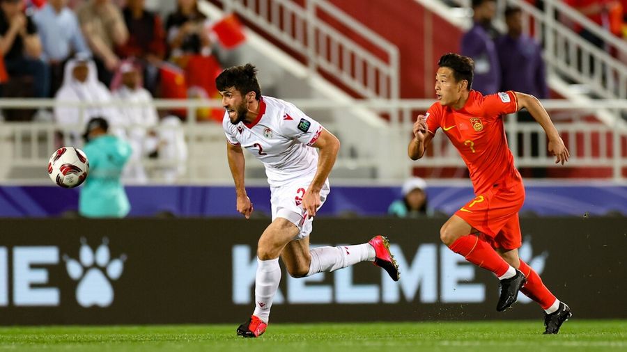 同日另一場,A組的中國對首次參加亞洲盃決賽周的塔吉克,中國今場有曾經旅歐的前鋒武磊、戴偉浚、以及歸化兵蔣光太等主力正選上陣,然而塔吉克上半場完全壓制著中國狂攻。塔吉克先有卡莫洛夫15分鐘在禁區內起腳射高,3分鐘後再有左閘納札羅夫禁區外遠射未能命中。塔吉克在29分鐘一次快速反擊再有加里洛夫禁區內窄角度勁射被中國門將顏駿凌擋出。