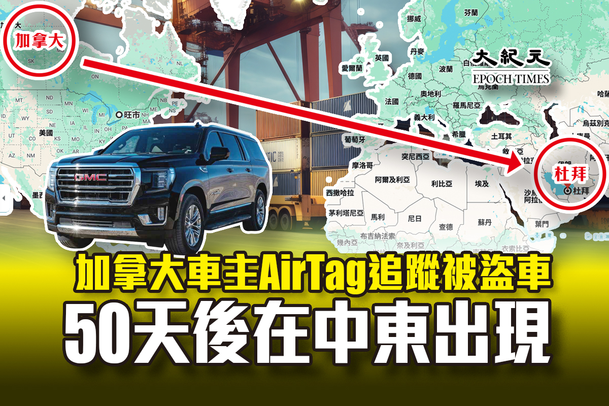 多倫多男子安德魯(Andrew)使用兩個隱藏在車內的蘋果AirTag,追蹤自己的2022 GMC Yukon XL,他的車首先出現在附近的鐵路站,然後到了滿地可港,最後到了阿拉伯聯合酋長國的一個二手車停車場。