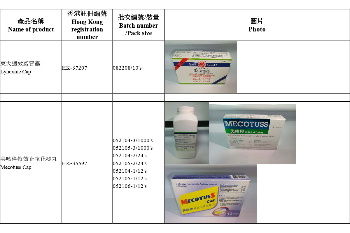 根據美亞的資料,該些產品曾供應予本地私家醫生、藥房及藥行。美亞已設立熱線電話(2601 2670)解答相關查詢。衞生署會密切監察有關回收。