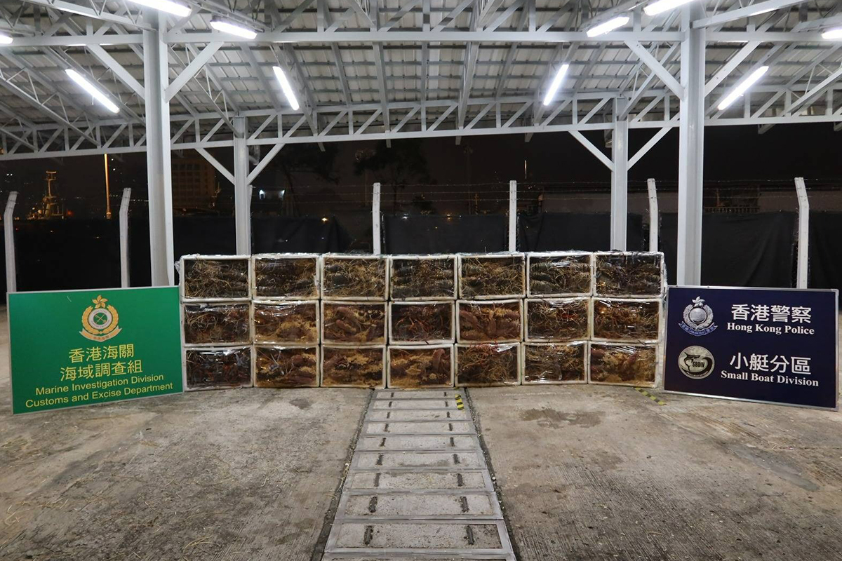 水警聯同海關昨晚(29日)在大嶼山一帶進行反非法入境及反走私行動,於塘福碼頭岸邊檢獲21箱約400公斤懷疑走私龍蝦,市值共約33萬元。