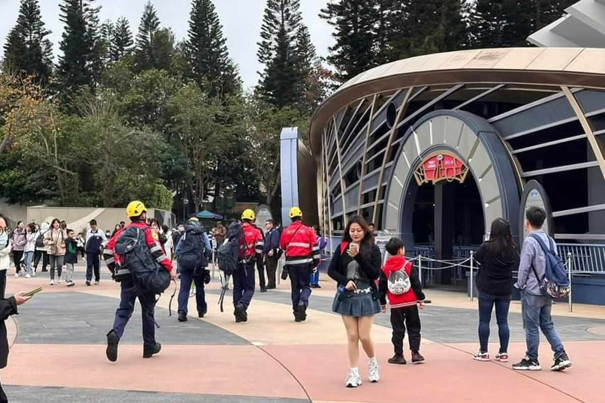 警方於下午3時21分接獲報案,指北大嶼山迪士尼樂園內一室內機動遊戲設施「星戰極速穿梭(Star Wars Hyperspace Mountain)」發生故障,12人被困在兩卡過山車中,消防處派出空中拯救專隊到場。