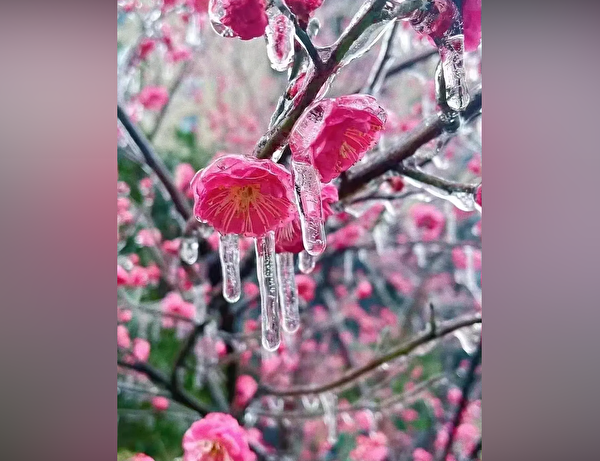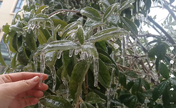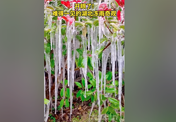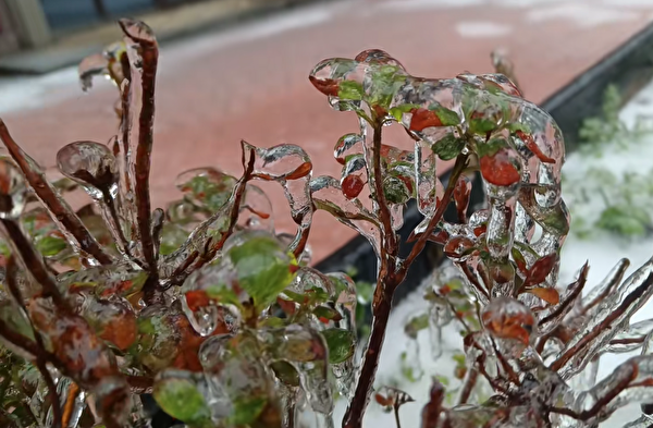 6日,多名武漢網民發帖稱,凍雨+暴雪,整個武漢凍成了個「冰糖葫蘆」,雨水落地成冰,所有植物凝固成冰塊,隨處可見「大冰凌」。