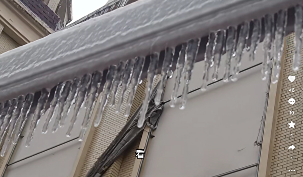 受損車主汪先生發影片說,「冰凌一節一節掉下來,就我這一邊的就有十幾輛車被砸。保險公司說,這類案子很多。」
