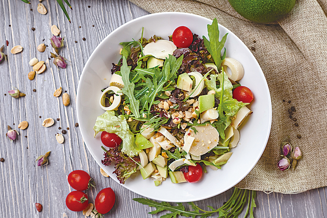很少有食物能像堅果一樣,用途廣泛且營養豐富,一天三餐隨時都可將堅果加入飲食中,提升菜餚的口味。比如將烤過的山核桃(Pecan)加入沙律中,代替油炸的麵包丁,或者把切碎的核桃加到早餐的煎餅裏。堅果可增加菜餚的份量、酥脆度和濃稠度。