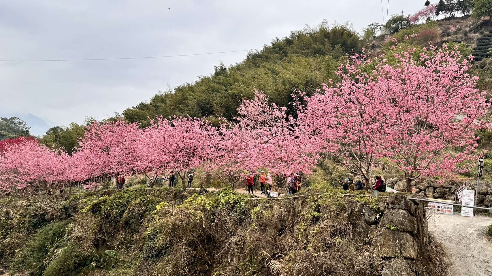 石壁櫻花盛開宛如粉紅仙境