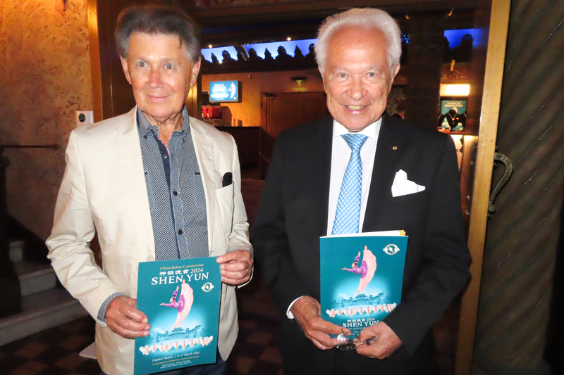 2024年3月8日晚,David Flint與退休廣告商Brian Rowlings一起觀看了神韻紐約藝術團在悉尼帝苑劇院(Capitol Theatre)的首場演出。