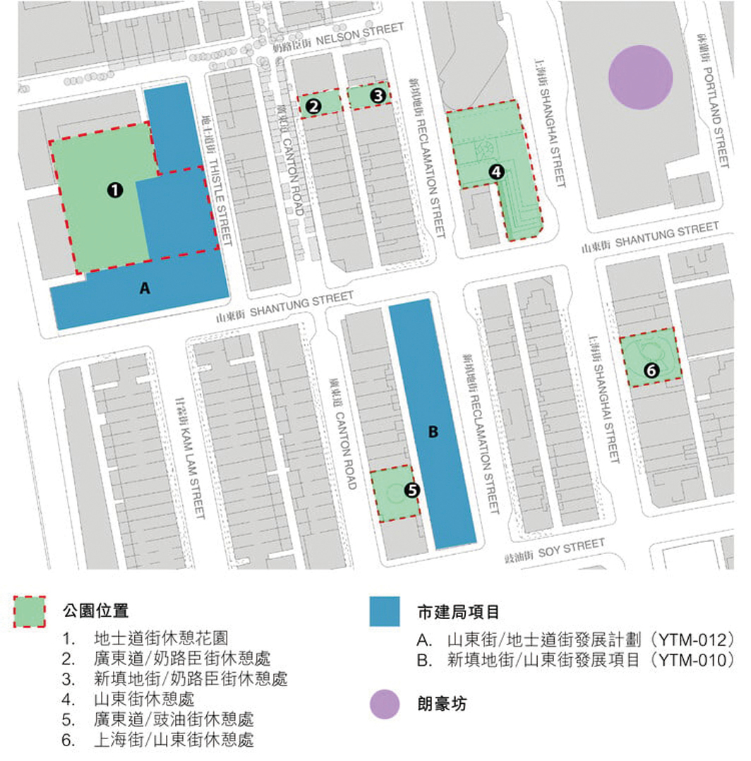 市建局表示,由於該花園現時被周邊樓宇包圍,位置隱蔽,日後將花園打通至山東街及地士道街的交界,提升休憩花園的可達性、通透性及地面空氣的流通程度,公園面積不會減少。局方將就周邊環境及使用者的需要作仔細研究,以提供舒適的休憩環境。