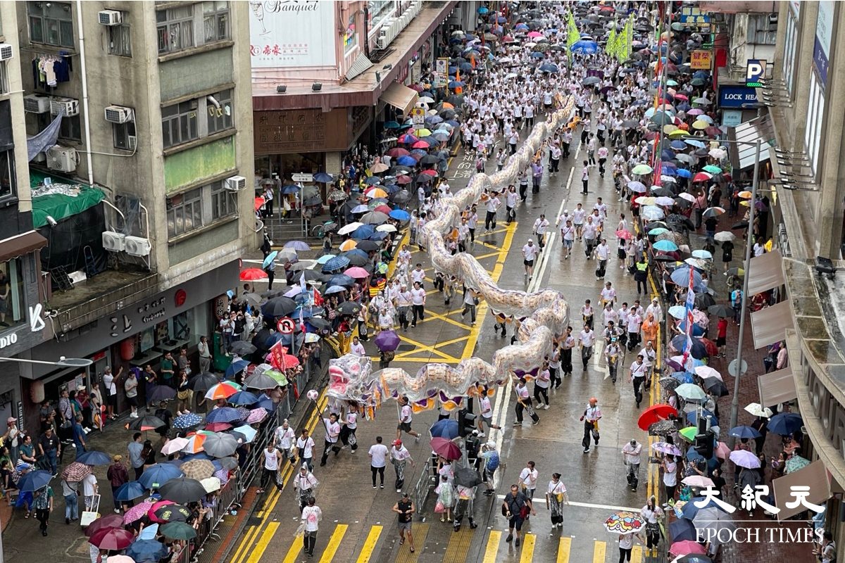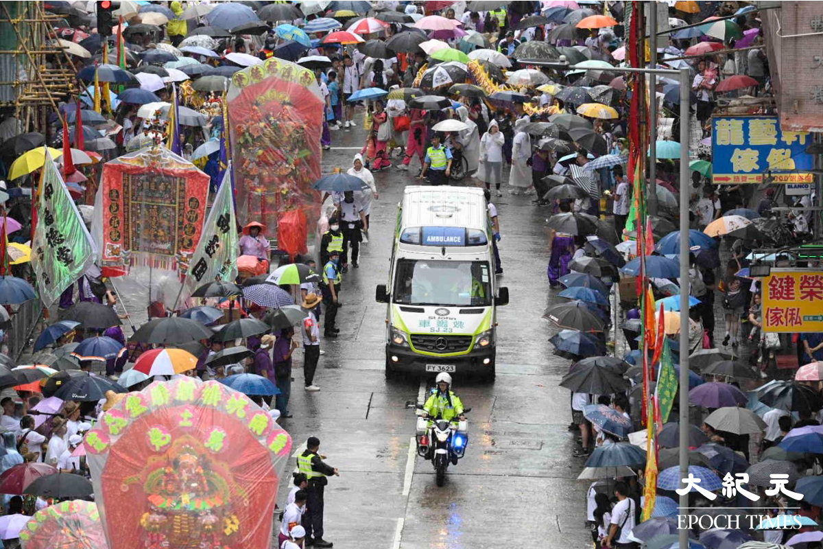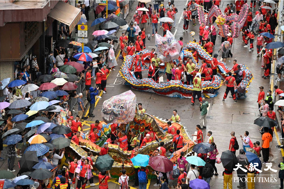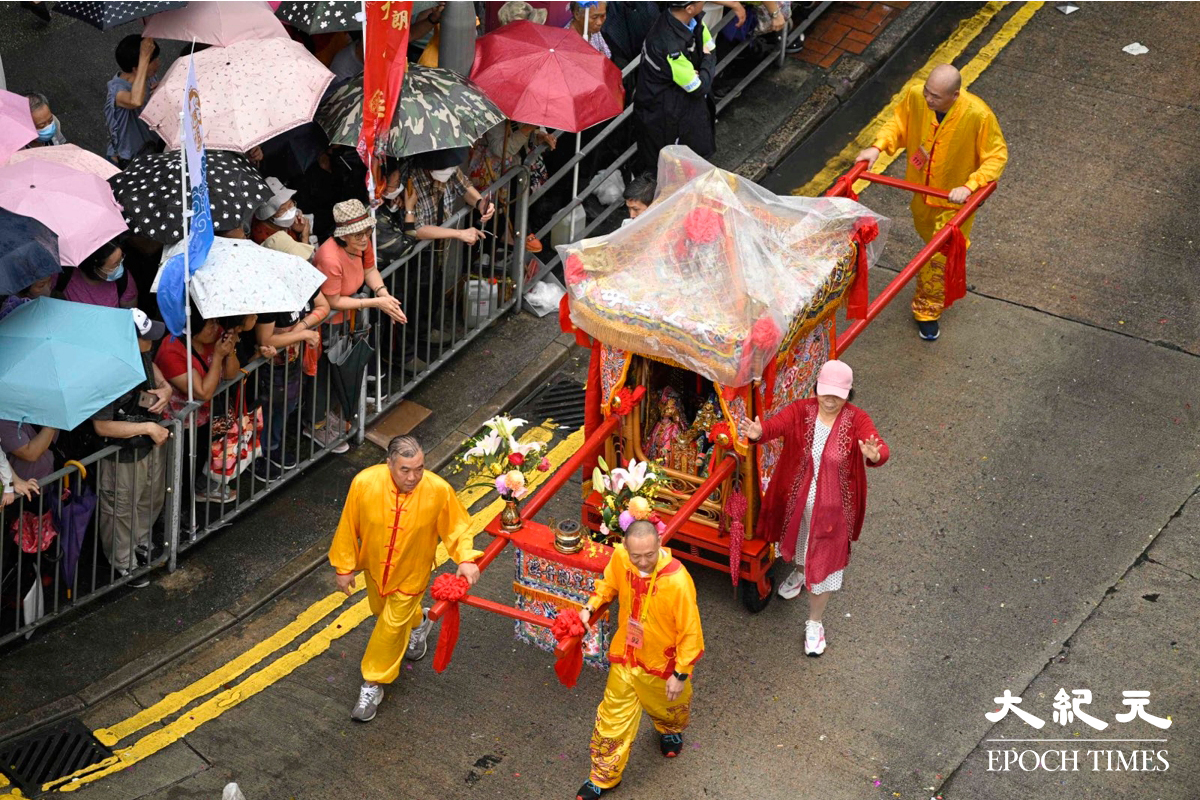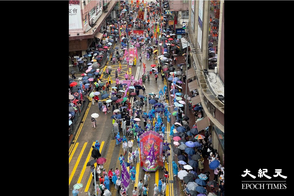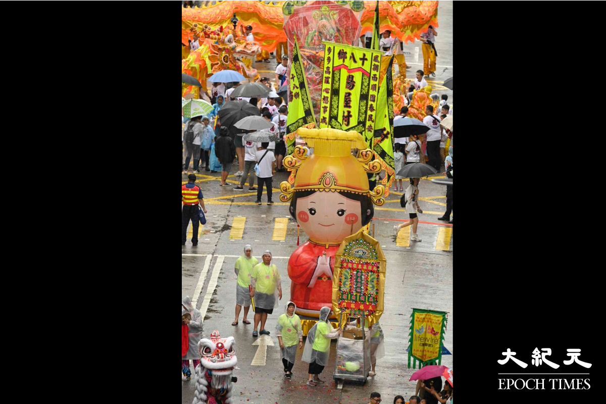 正值天雨,無阻市民熱情,大批市民撐傘在巡遊經過的街道旁邊聚集觀賞,亦有人在兩旁建築依窗觀看。現場則有多名警員戒備及協助維持秩序。另外,隊伍中的天后神像一度要撐傘保護,其它物品,例如紙製花炮、舞龍等,不少亦用塑膠包裹,以免弄濕。