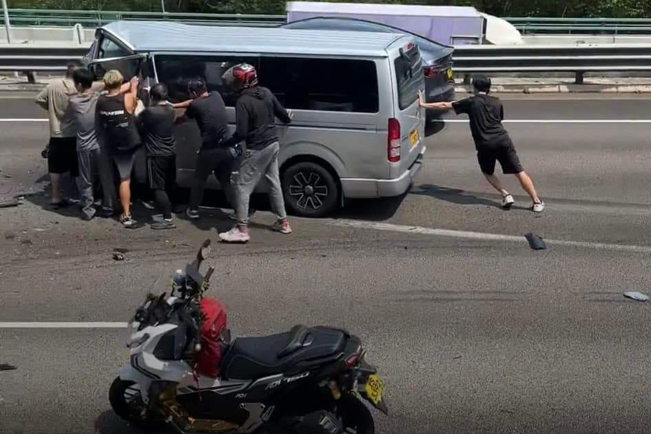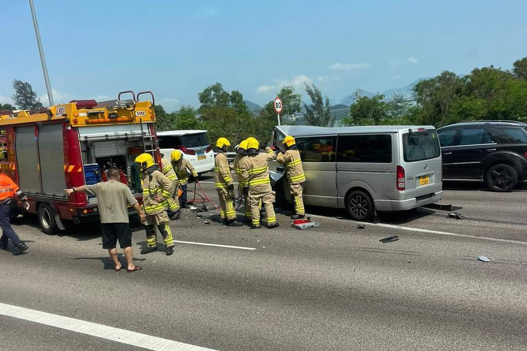 今日下午2時30分左右,一輛客貨車沿屯門公路往九龍方向行駛。當駛至嘉龍村對開,懷疑撞向一輛中型貨車車尾,客貨車女司機及一名9歲男童被困,由消防員到場救出,兩人清醒,由救護車送屯門醫院治理。從網上圖片可見,肇事客貨車車頭嚴重損毀,雜物散落一地,多名熱心市民合力拯救被困傷者。