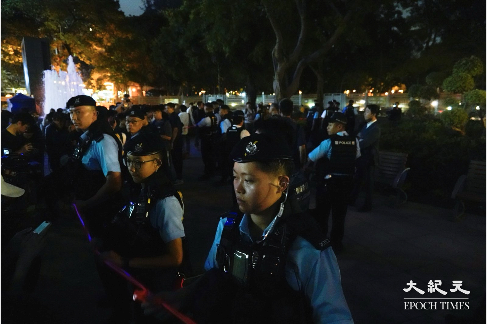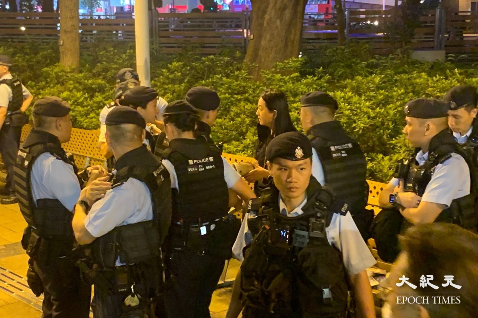 以往六四燭光晚會在晚上8時開始,昨晚同一時間,開始有數名坐在長椅的市民亮起手機燈或燭光,先後迅被警員要求熄滅。其中在8時15分左右被截查的男子Thomas表示,他和男友人只是想悼念六四,不過當點起蠟燭約一兩分鐘後,便有警員上前稱危險,不論如何也要熄掉蠟燭。