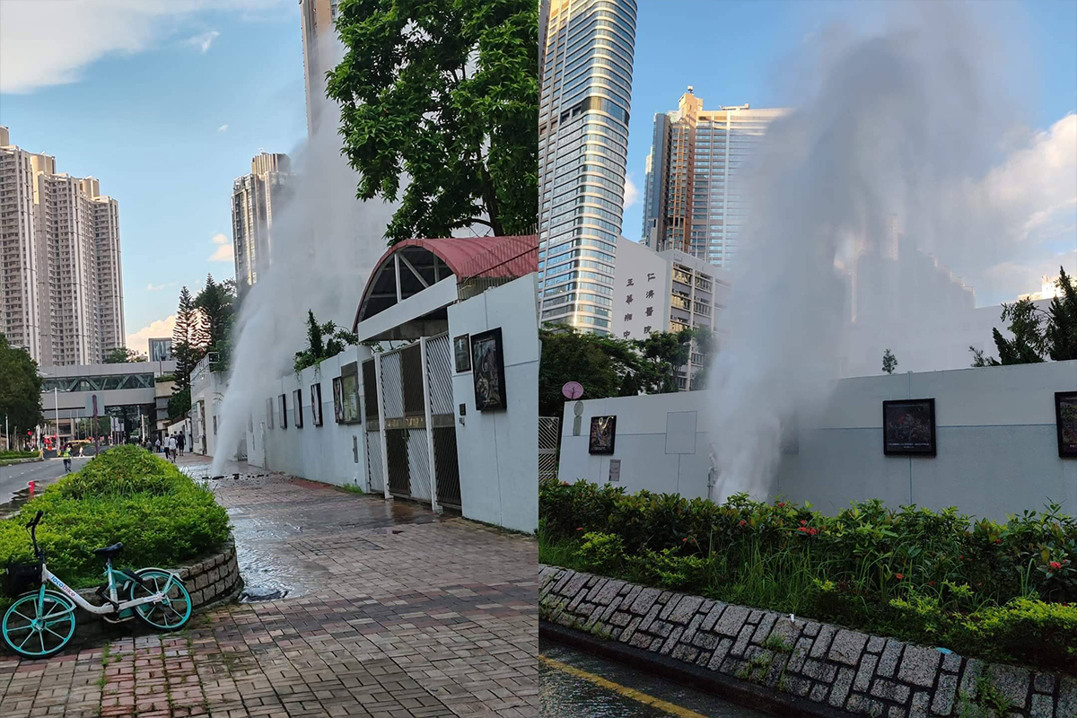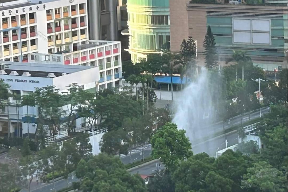 將軍澳唐俊街今早(5日)爆水管,噴出約6米水柱,波及旁邊一所學校,水務署派員到場閂水掣及搶修,事故中無人受傷。