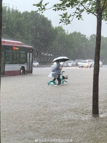 「北京裴秀智」:最討厭下雨季節了,北京今天下暴雨了,賊大都快成海了,平時是牛馬,今天是水牛和河馬。