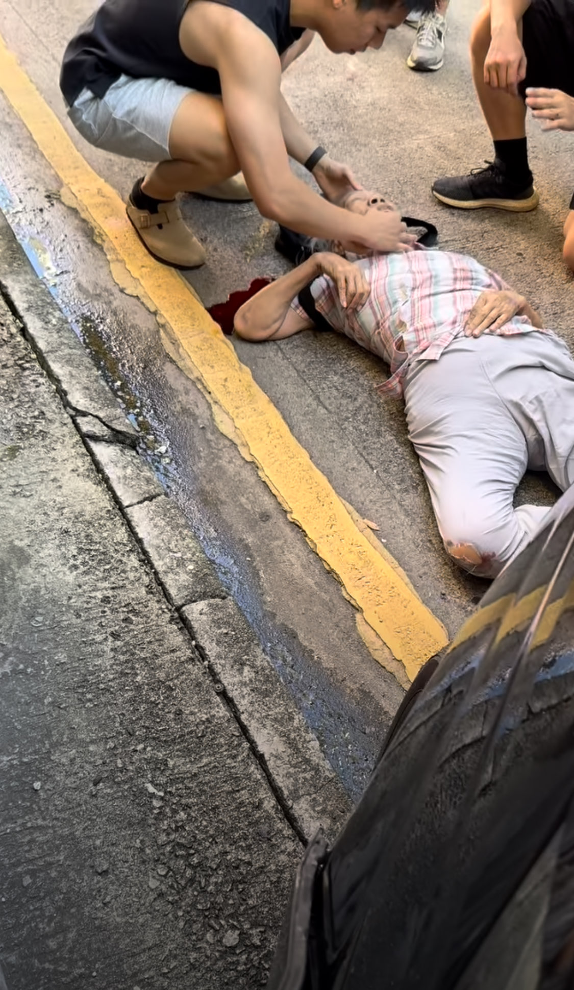 涉事私家車剷上行人路,撞向路邊鐵欄,網上影片顯示一名老人倒臥在私家車底浴血,毫無反應,多名途人合力抬車拯救,隨後消防、救護人員到場救援。目擊者王先生憶述,事發後大批熱心市民聽到大叫聲,遂趕至現場救人,自己亦有到場幫忙,有10多人嘗試挪開私家車,過程只花了約1分鐘。