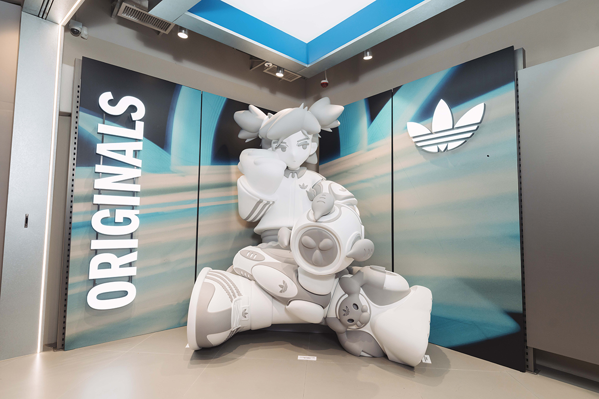 adidas旺角朗豪坊專門店佔地近4,693平方呎,以家居柔和色調為主,甫進店內便能感受到品牌的「Home Of Sport」的舒適感。adidas邀請了香港藝術家OffGod:Tate合作,創作大型雕塑,以adidas經典輪廓打造成文化產物,為店鋪加入獨特的街頭文化元素,展現品牌DNA且勇於創新的精神。