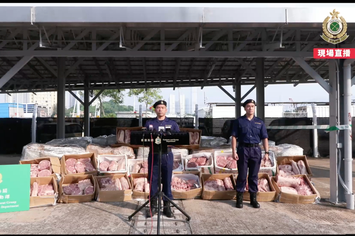 海關偵破利用大馬力快艇走私急凍和牛牛肉至大陸的案件,檢獲涉案快艇及1.01萬公斤走私和牛牛肉,市值共約2,100萬元,拘捕5名大陸男子。