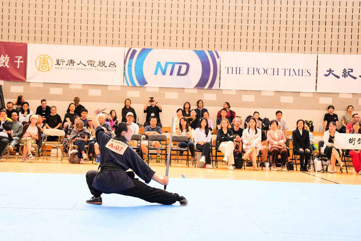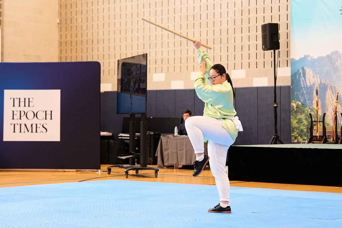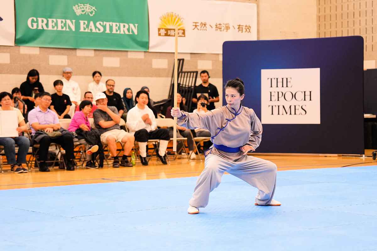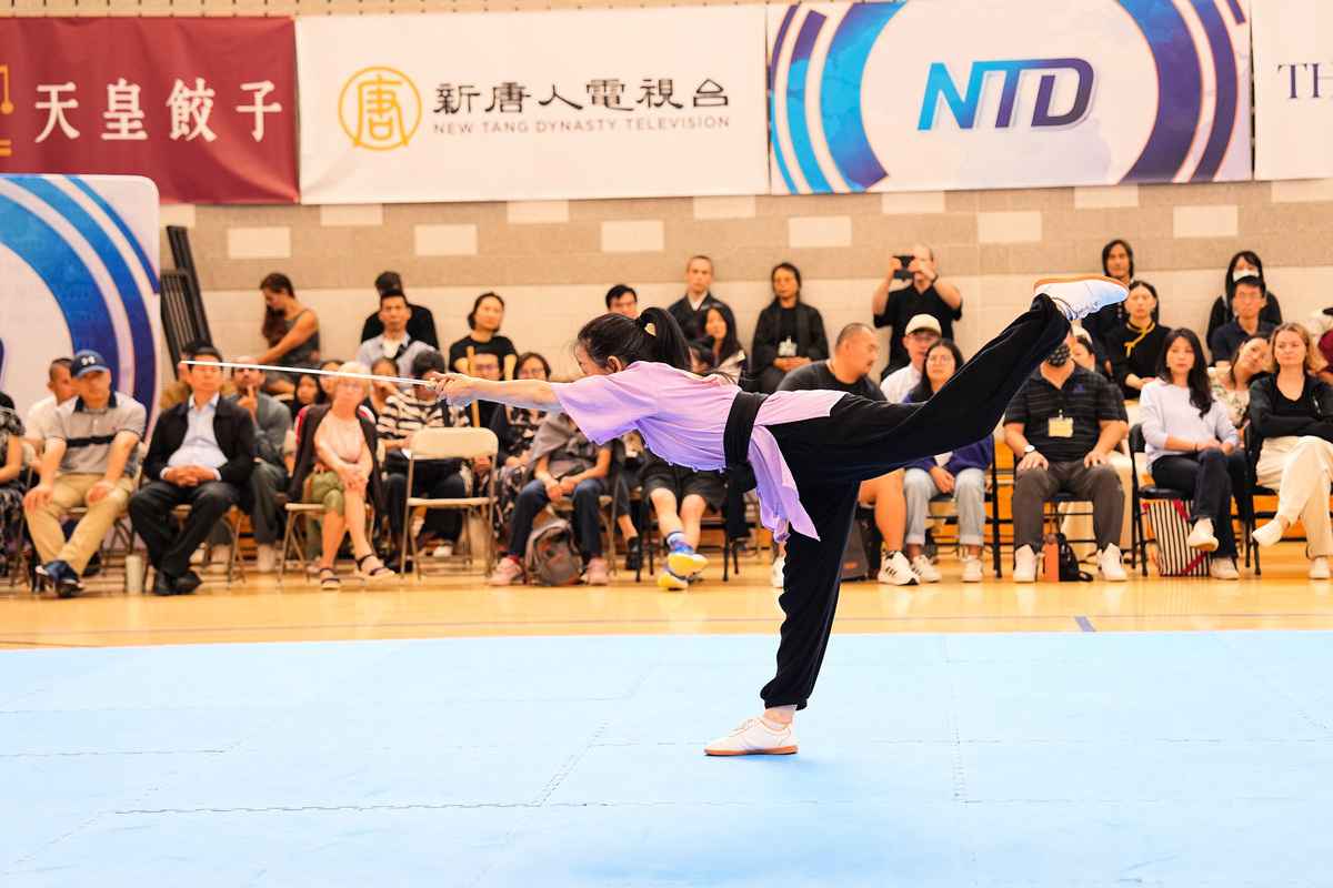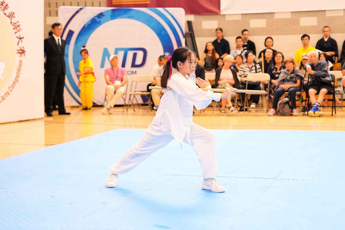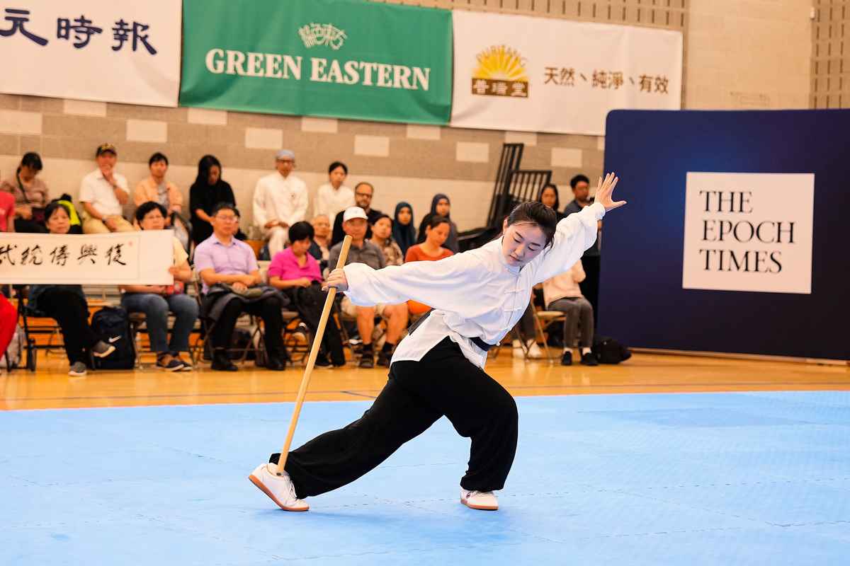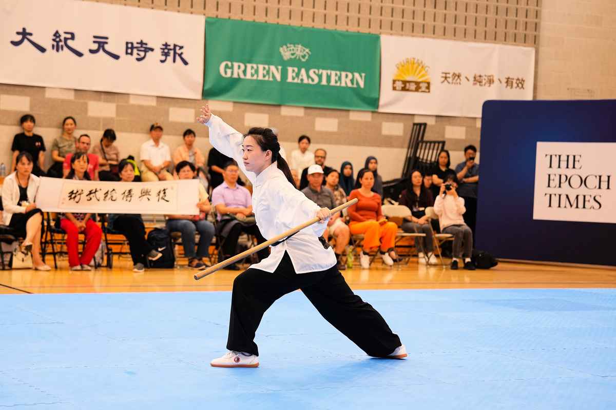 2024年9月2日,第八屆新唐人全世界中華傳統武術大賽在美國新澤西州沃爾德威克(Waldwick)舉行決賽。圖為美國選手梅根‧韋斯特曼(Megan Westerman)在女子器械組比賽中表演少林達摩劍。(戴兵/大紀元)