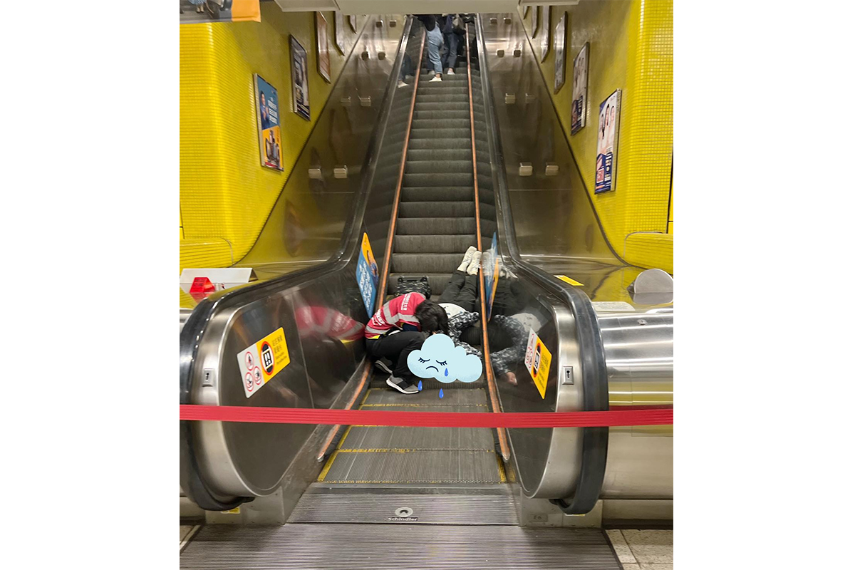 港鐵油塘站今日(3日)下午1時許發生涉扶手電梯意外,有一名帶着手拉車的女子懷疑在站內的扶手電梯上跌倒,網上圖片可以女子頭朝下,附文則指「目測無反應,已報警」,又指站內工作人員反應好快,隨即停止電梯運作。