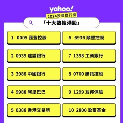 隨着2024年接近尾聲,雅虎香港公布本年度「Yahoo全年搜尋人氣榜」結果,總結年度焦點人事物。其中,「十大熱搜港股」與「十大熱搜美股」排行榜揭示了市場動向,為投資者提供洞見,迎接2025年的挑戰與機遇。