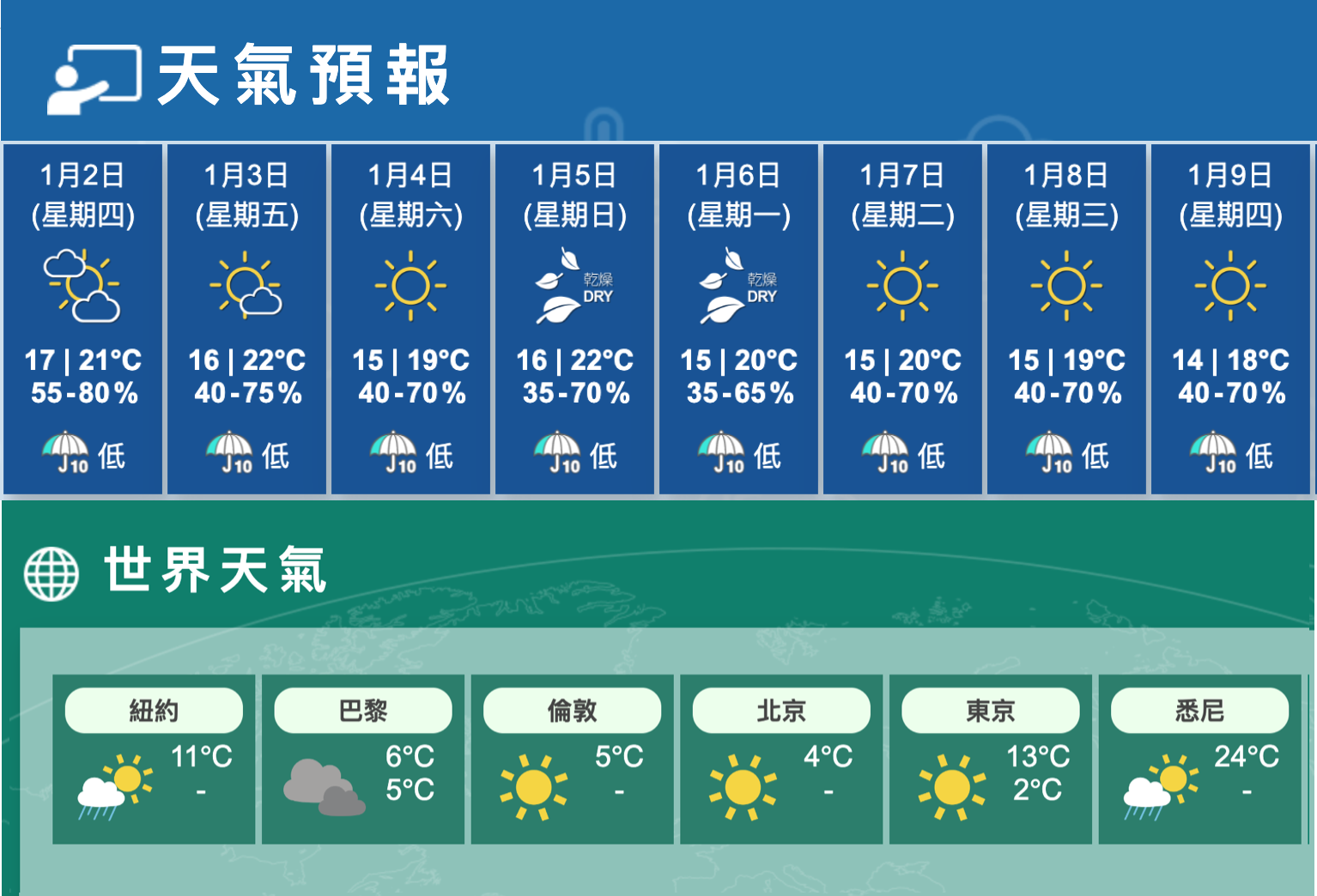 天文台早上預測,受一股偏東氣流和南中國海低壓區帶來的雲帶影響,今日天氣大致多雲,早上有一兩陣微雨,日間短暫時間有陽光,最高氣溫約21度。吹和緩東至東北風,初時離岸風勢清勁,高地間中吹強風。展望未來數日天晴乾燥,早晚清涼,日夜溫差較大。