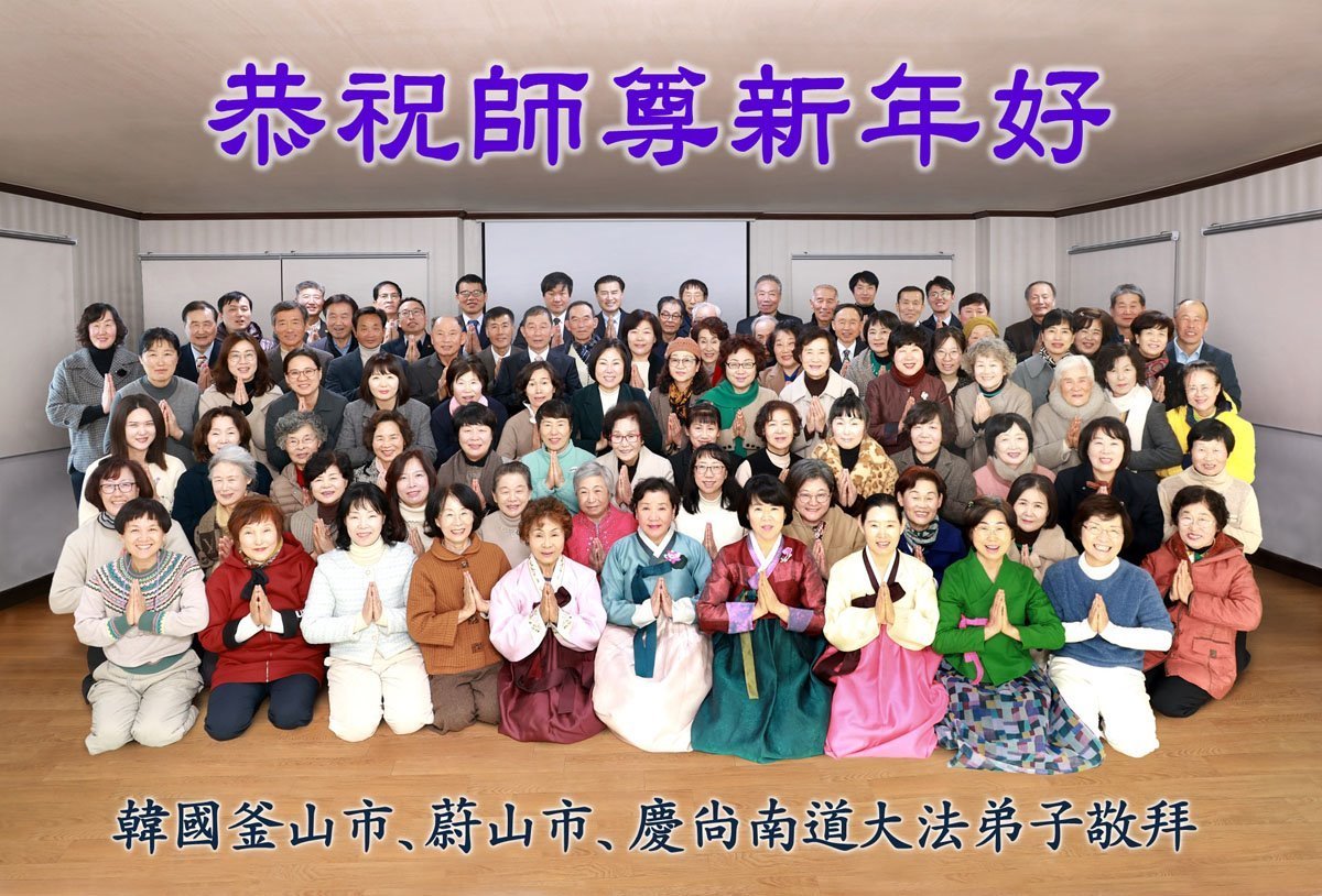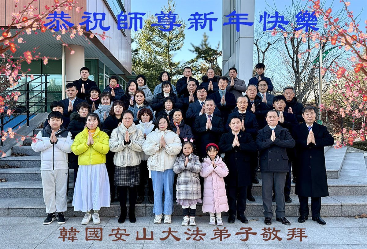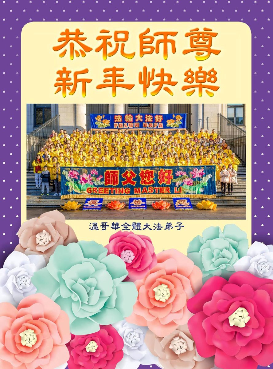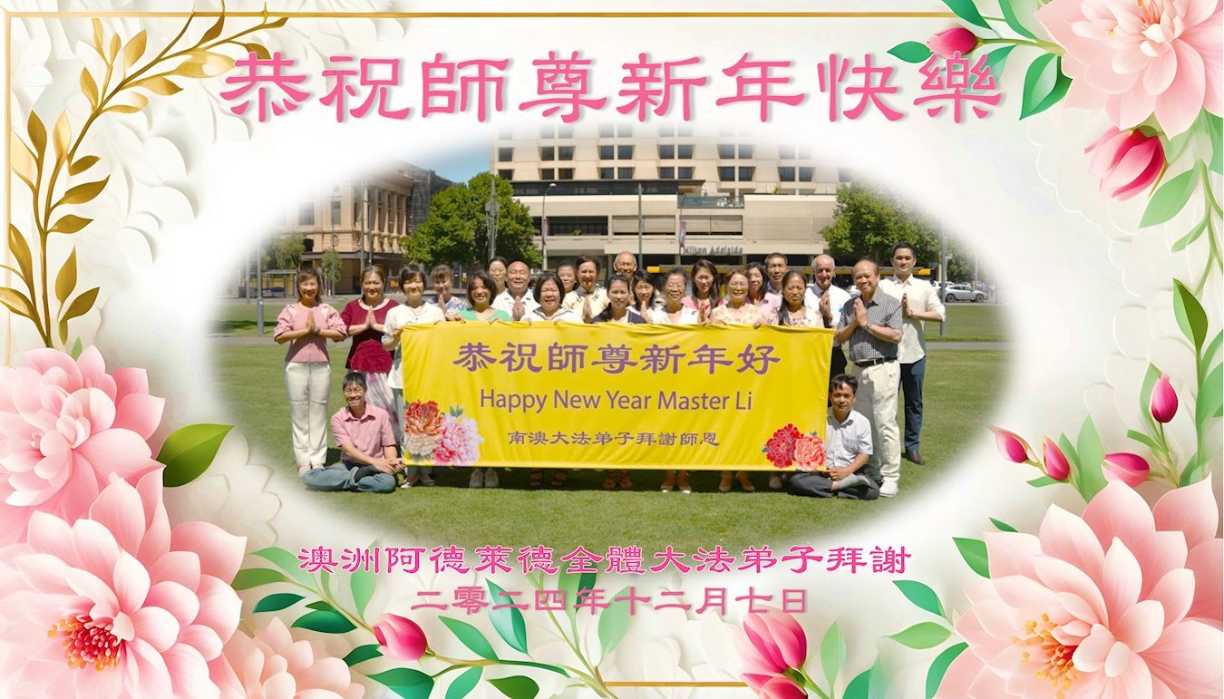 法輪功學員寫道:「恭祝師父新年好!我們對慈悲的師父感恩之心無以言表。新的一年,我們將努力做好三件事。我們會努力沿著師父安排的道路一起走下去。法輪大法好!真善忍好!謝謝師父!」(譯文)