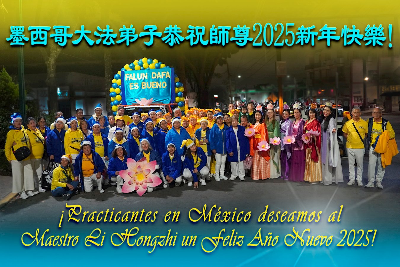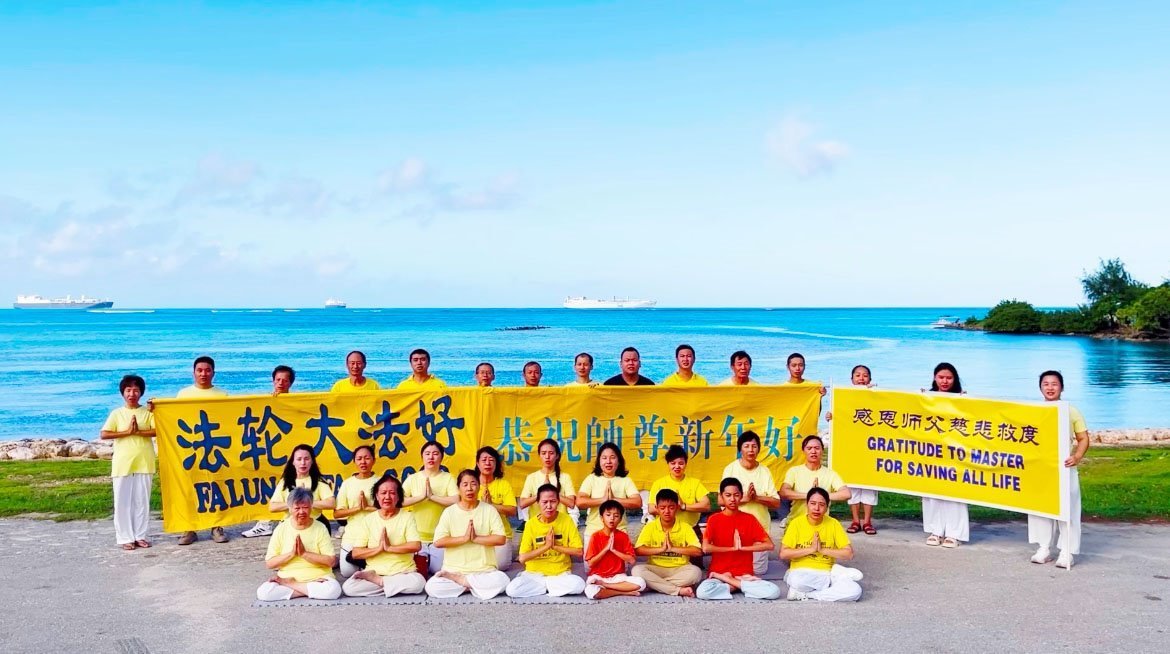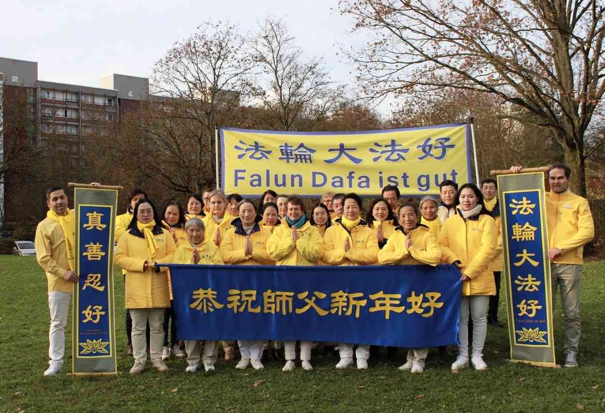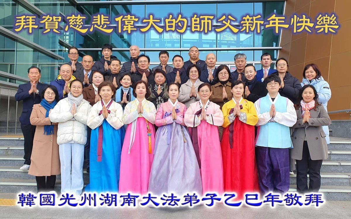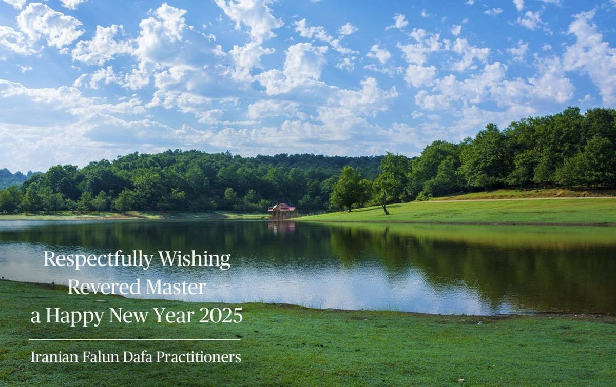 法輪功學員寫道:「恭祝師父新年好!我們對慈悲的師父感恩之心無以言表。新的一年,我們將努力做好三件事。我們會努力沿著師父安排的道路一起走下去。法輪大法好!真善忍好!謝謝師父!」(譯文)