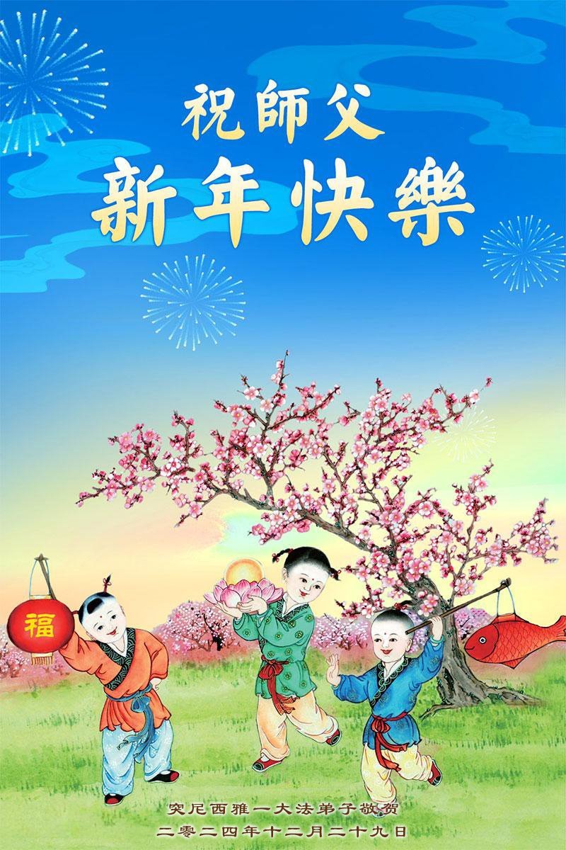 法輪功學員寫道:「祝師父新年好!師父新年快樂!」#