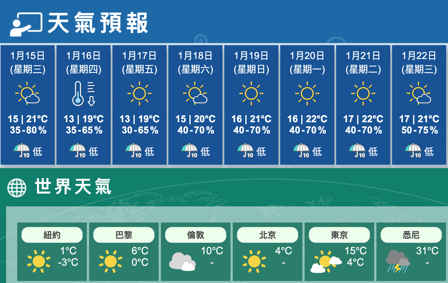 預期未來一兩日天晴,日間非常乾燥,市區最低氣溫在13度左右,新界再低幾度。周末期間早上仍然清涼。