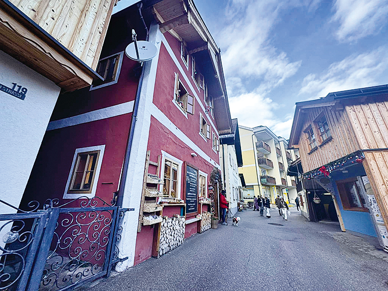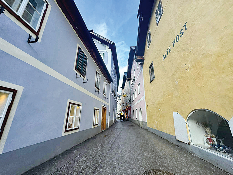 哈爾施塔特的街道蜿蜒狹窄,兩旁是風格迥異的木質建築,紅色、黃色與藍色的房屋彼此相依。Nina分享了她漫步小鎮的照片,街巷間的一抹抹亮色,與背後巍峨的山脈形成鮮明對比。