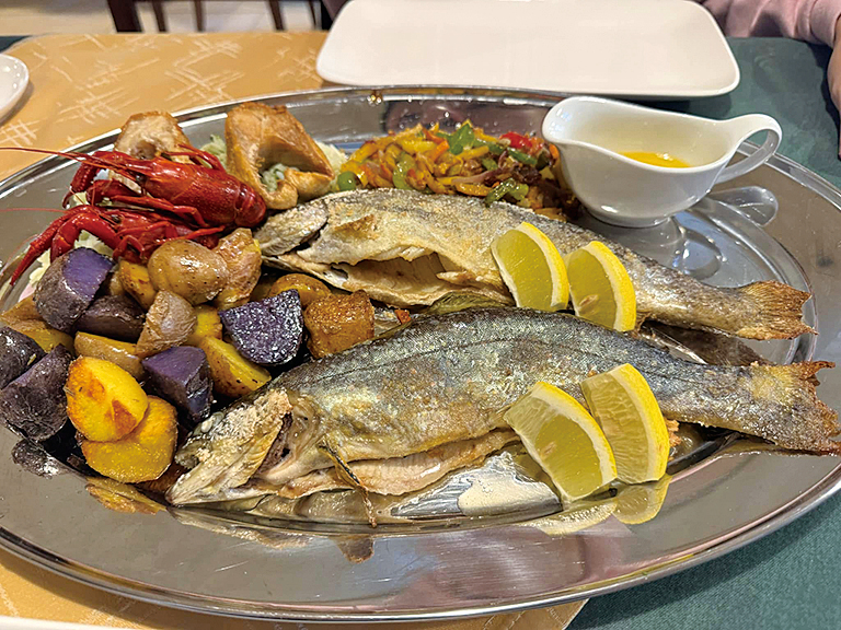 小鎮不僅風景如畫,還擁有令人垂涎的美食。在一間當地餐廳,Nina品嚐了湖中特產鱒魚搭配油香米飯與蔬菜的二人套餐。她形容,這頓簡單卻美味的餐點,不僅飽腹,還為冬日的小鎮增添了一絲溫暖。