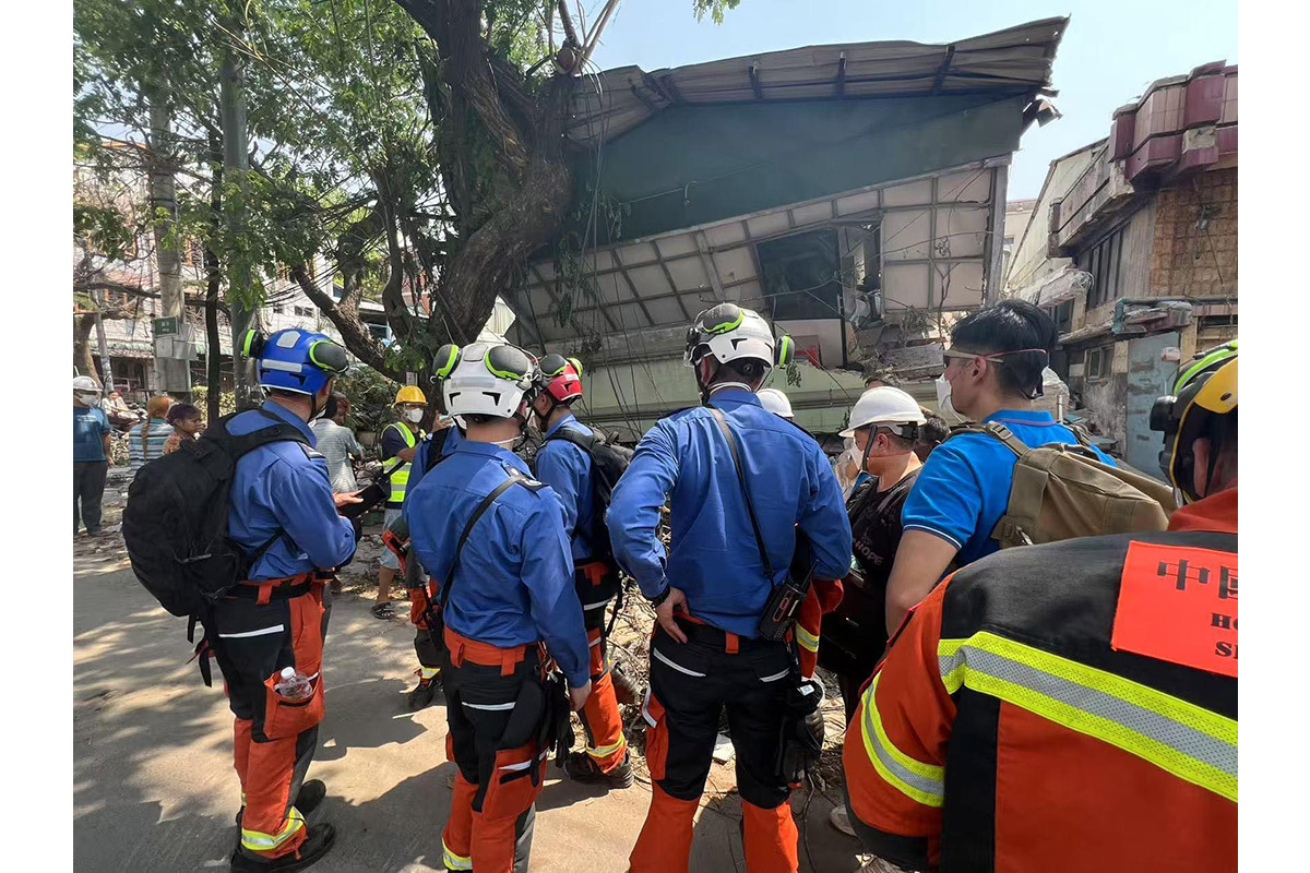 下午3時30分,特區救援隊帶同專業裝備及搜救犬,於曼德勒其中兩個受災區域搜救。