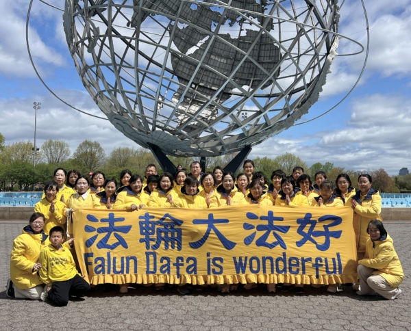 在5·13「世界法輪大法日」即將到來之際,紐約市法拉盛真相點的法輪功學員4月27日齊聚王后區地標——法拉盛草原-可樂娜公園的大地球儀前,恭祝慈悲偉大的師父李洪志先生生日快樂,感恩師父的慈悲救度,他們表示要把法輪大法救度眾生的福音廣傳,讓眾生明白「法輪大法好,真善忍好」,在世風日下的亂世中獲得救度。