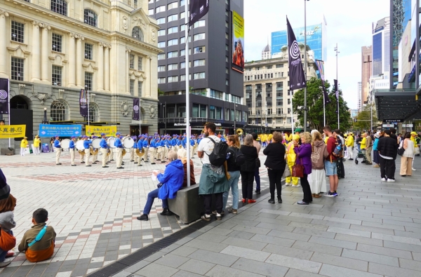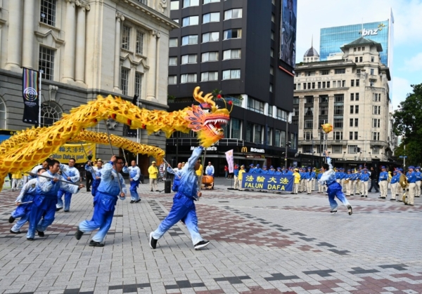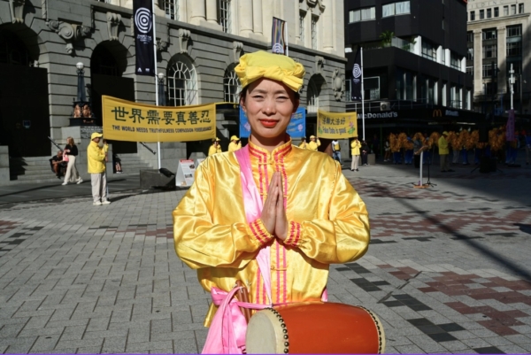 2025年5月10日,紐西蘭部份法輪功學員齊聚奧克蘭繁華商業中心伊利沙伯廣場,舉行慶祝「5‧13」世界法輪大法日活動。紐西蘭多位政要發賀電祝福世界法輪大法日,對世界法輪大法日表達支持並祝願活動圓滿成功。