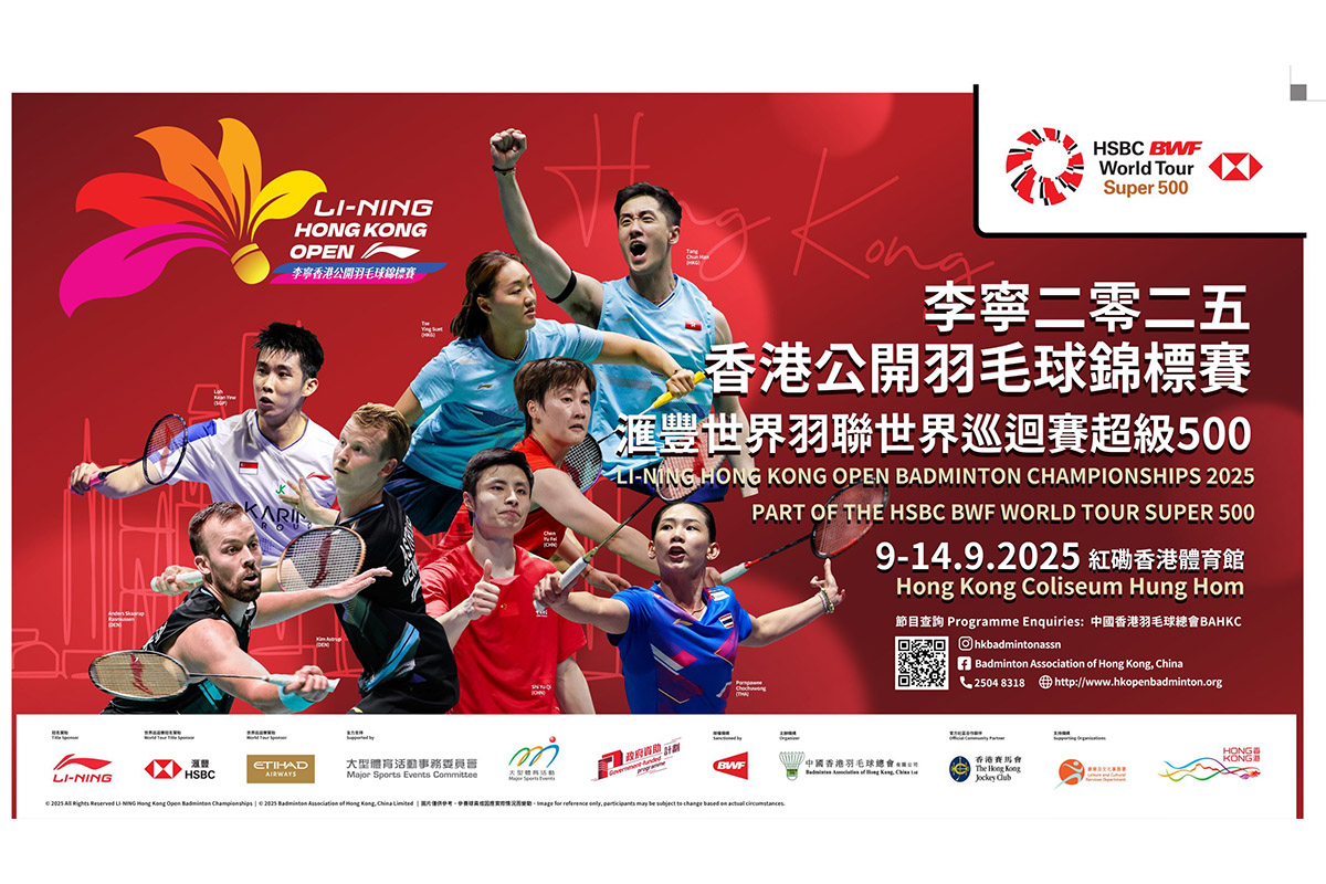由世界羽聯認可,中國香港羽毛球總會主辦,為期6天的「李寧二零二五香港公開羽毛球錦標賽 滙豐世界羽聯世界巡迴賽超級500」將於9月9日至14日在紅磡香港體育館舉行。今年報名球員來自20個國家地區,總人數達336人,港隊今年繼續派出全部精英上陣。門票將於8月12日起於城市售票網公開發售。