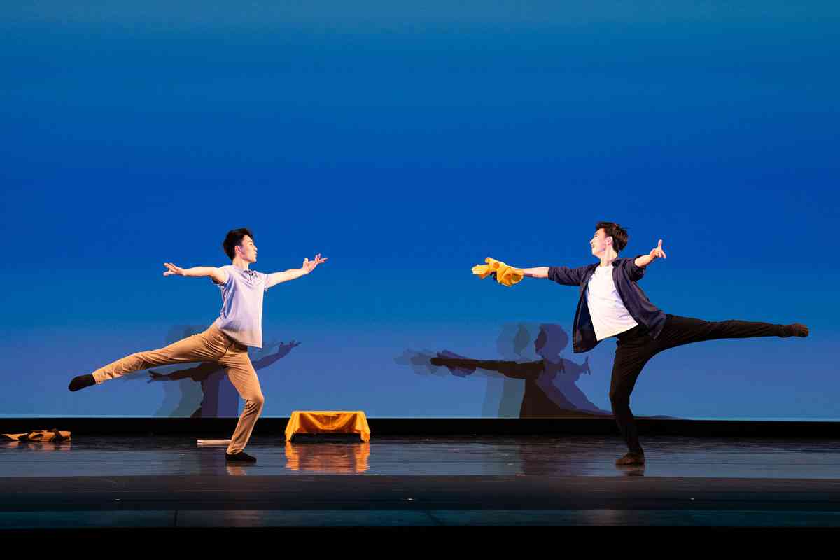 2025年9月14日,第十一屆新唐人全世界中國古典舞大賽決賽在美國紐約州Sugar Loaf表演藝術中心舉行。圖為青年男子組銀獎得主周正傑(右)表演舞蹈《別哀》。(戴兵/大紀元)
