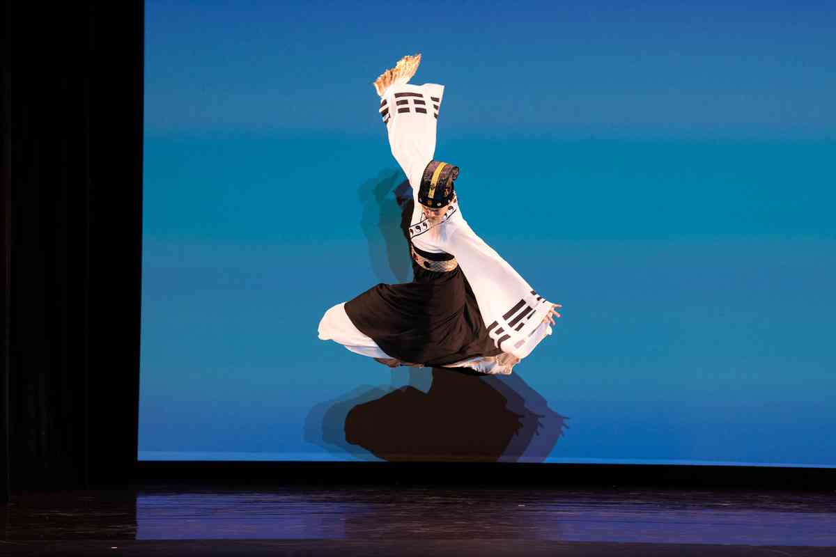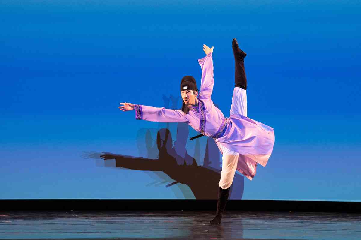 2025年9月14日,第十一屆新唐人全世界中國古典舞大賽決賽在美國紐約州Sugar Loaf表演藝術中心舉行。圖為青年男子組銀獎得主梁知源表演舞蹈《一曲笛聲別長安》。(戴兵/大紀元)