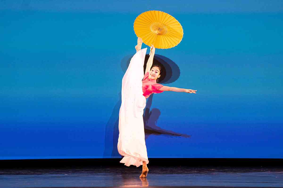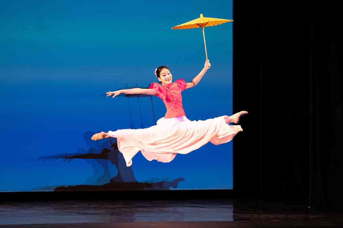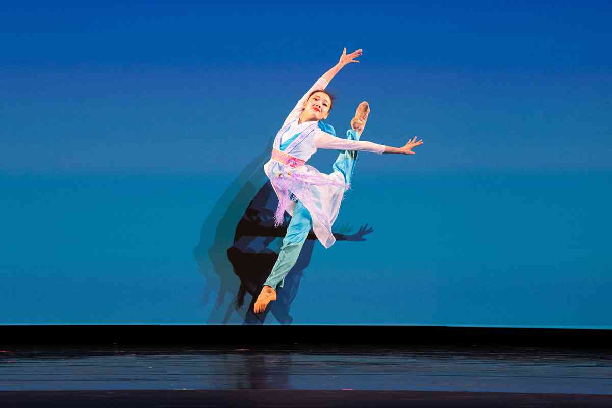 2025年9月14日,第十一屆新唐人全世界中國古典舞大賽決賽在美國紐約州Sugar Loaf表演藝術中心舉行。圖為少年女子組銀獎得主歐陽美鳳表演舞蹈《鏡花水月》。(戴兵/大紀元)