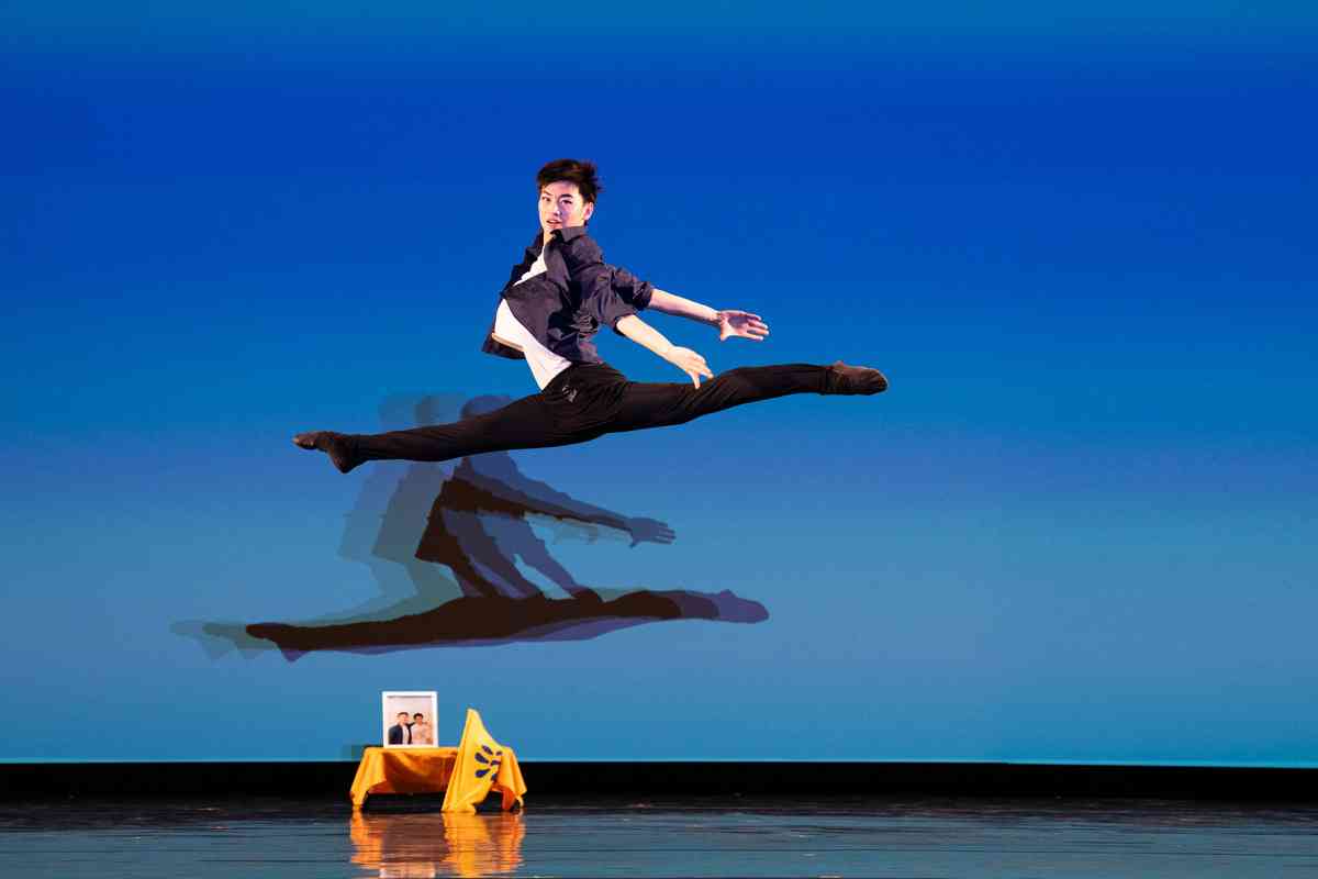 2025年9月14日,第十一屆新唐人全世界中國古典舞大賽決賽在美國紐約州Sugar Loaf表演藝術中心舉行。圖為青年男子組銀獎得主周正傑表演舞蹈《別哀》。(戴兵/大紀元)