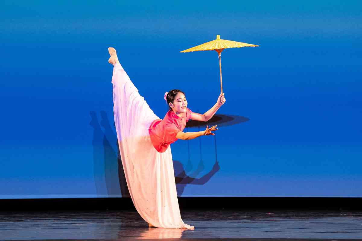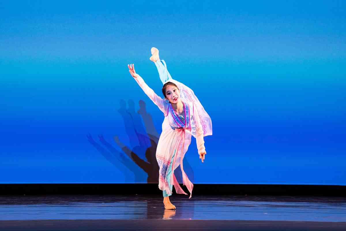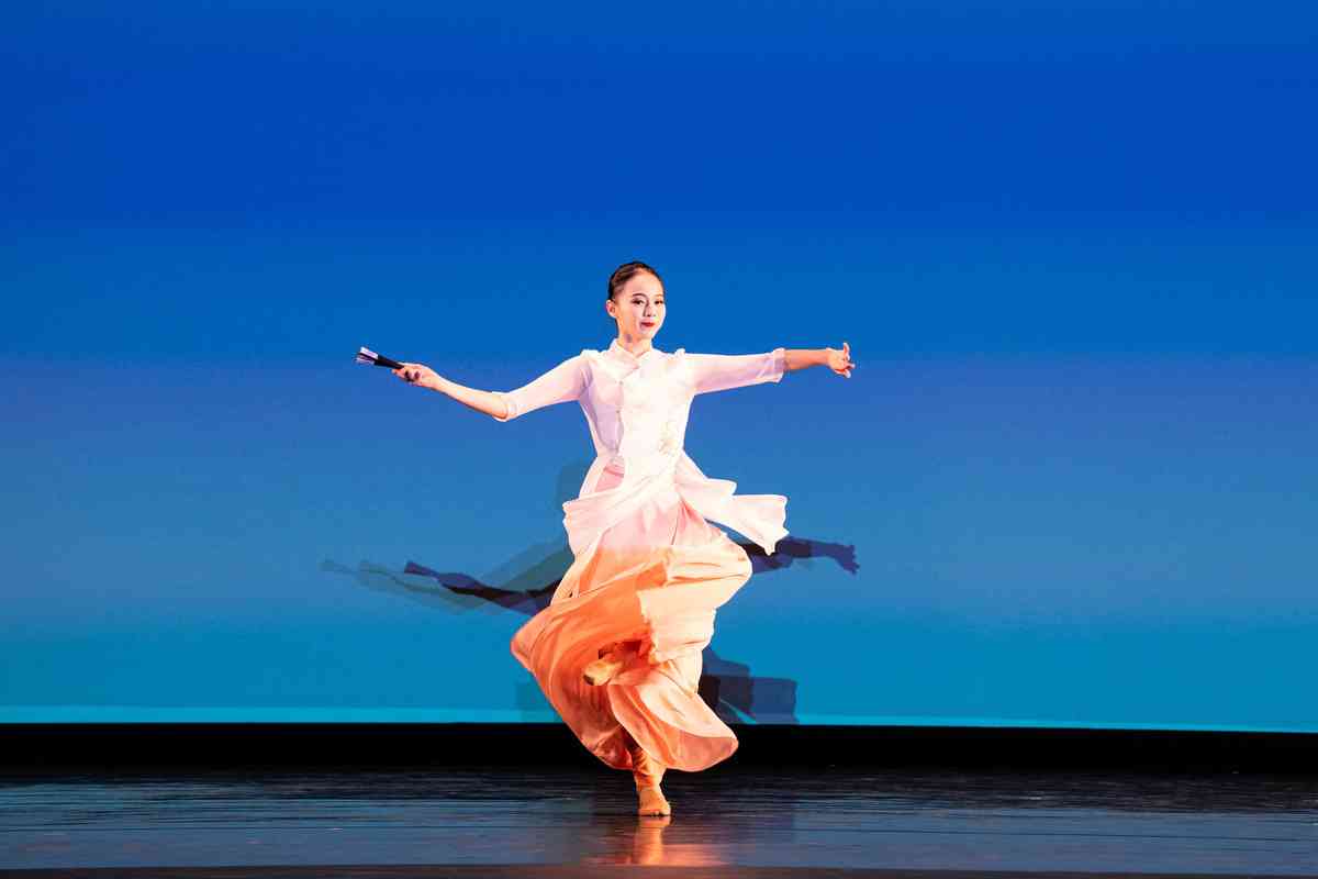 2025年9月14日,第十一屆新唐人全世界中國古典舞大賽決賽在美國紐約州Sugar Loaf表演藝術中心舉行。圖為青年女子組銀獎得主黃明慧表演舞蹈《灼灼印芳華》。(戴兵/大紀元)