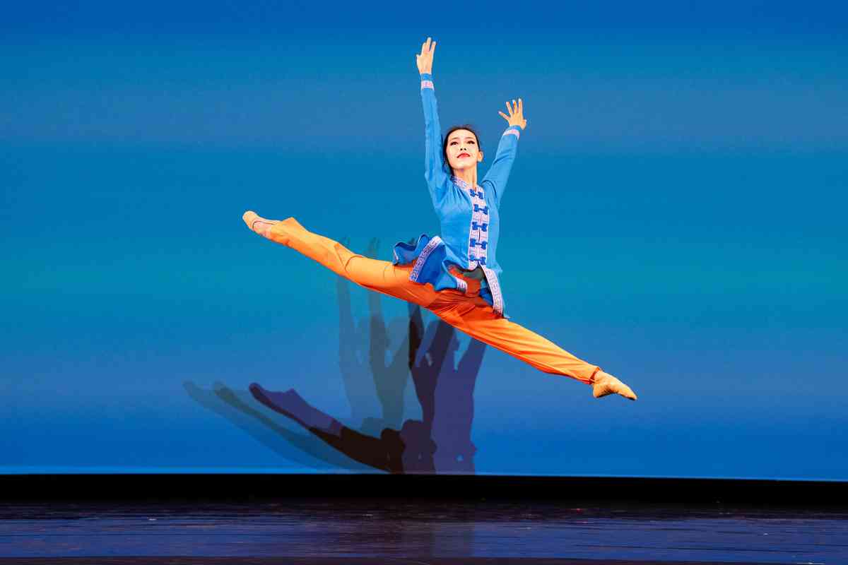 2025年9月14日,第十一屆新唐人全世界中國古典舞大賽決賽在美國紐約州Sugar Loaf表演藝術中心舉行。圖為青年女子組銀獎得主大勢中天表演舞蹈《悠然心會》。(戴兵/大紀元)